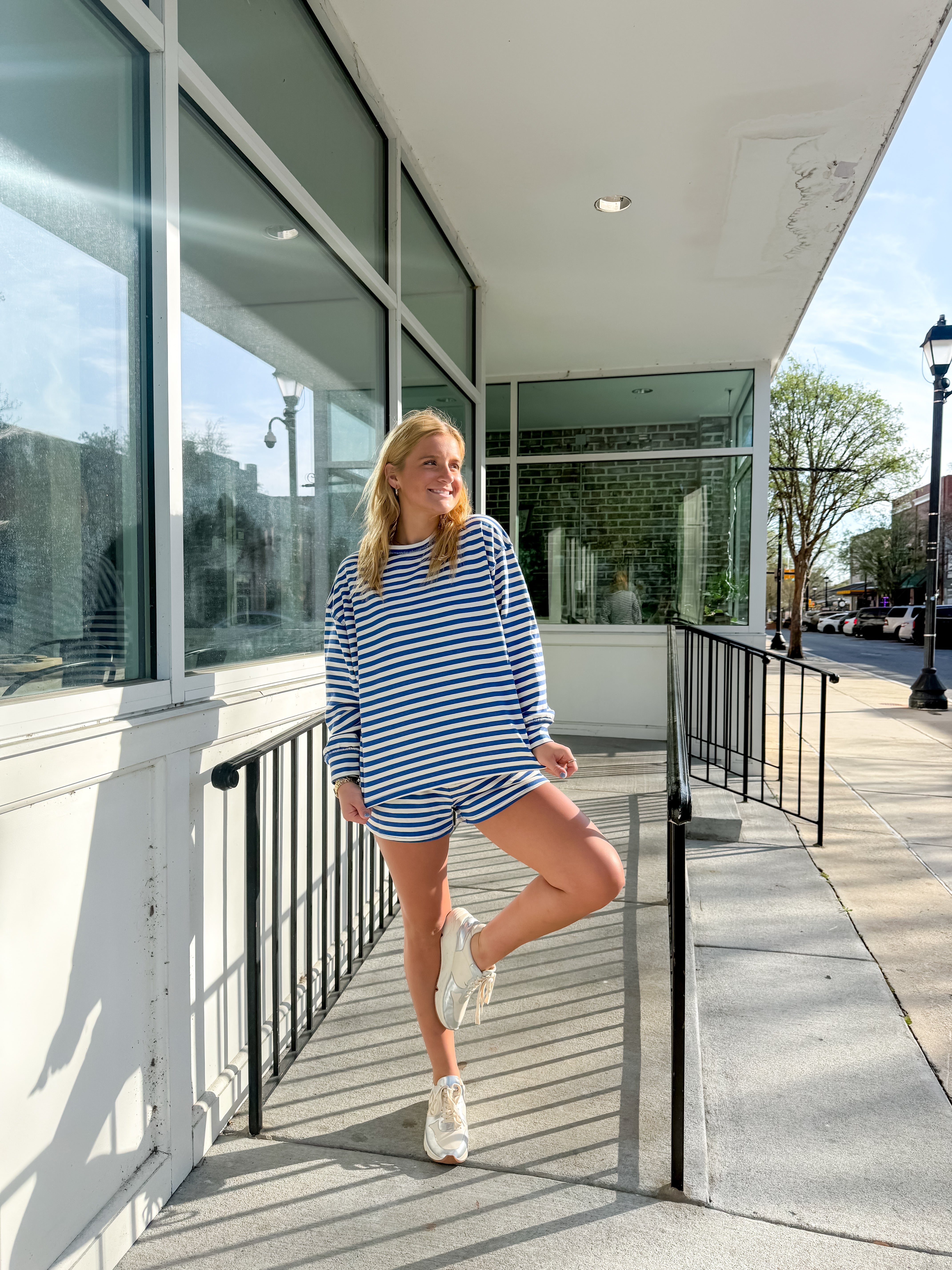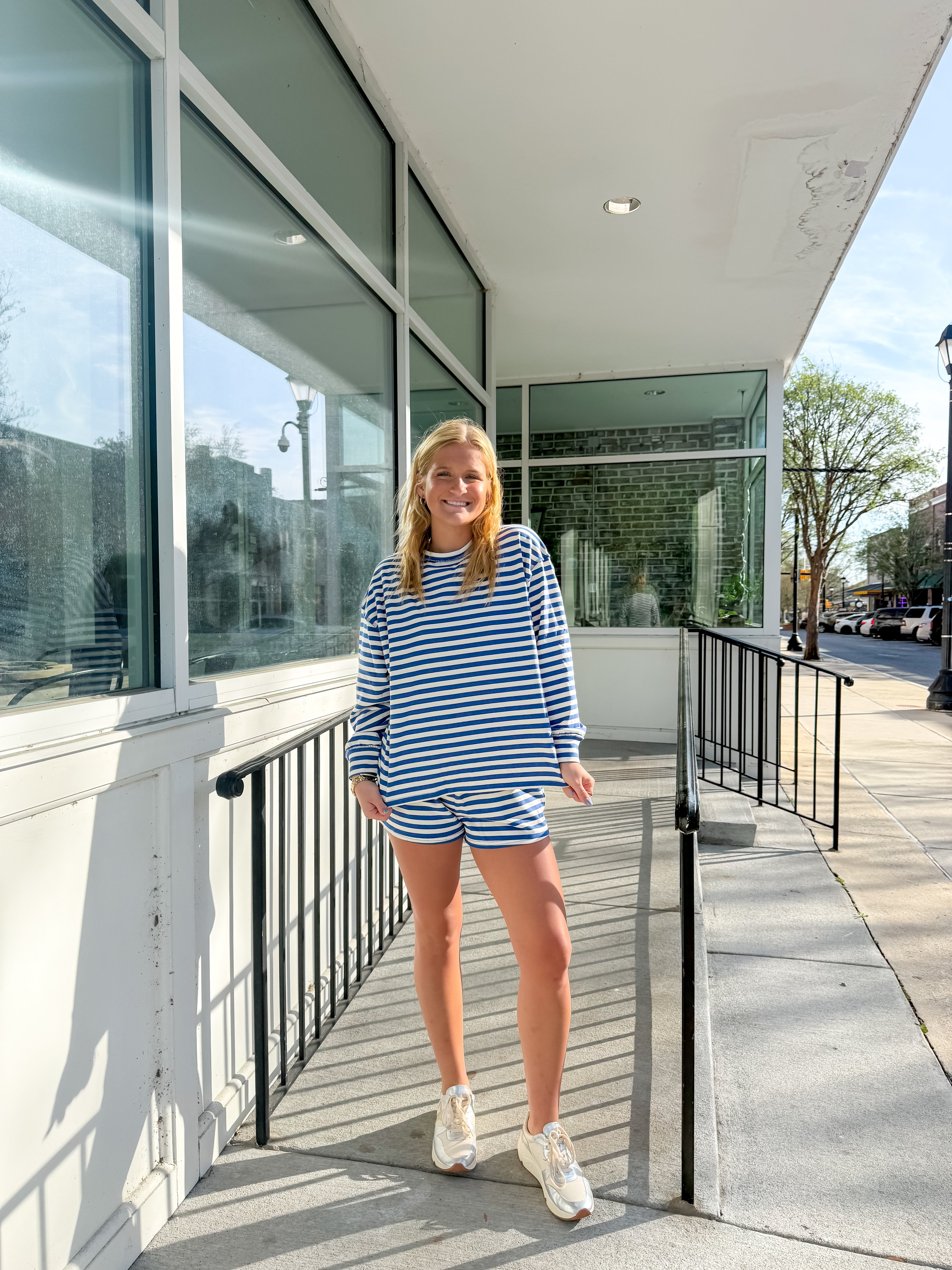Meet the Comfort Set: your new partner in crime for lazy days and Netflix marathons! With its irresistibly cozy stripes, this ensemble is like a warm hug that says, "Stay in your PJs!" Perfect for lounging or pretending you're a chic couch potato—your call! Runs true to size!