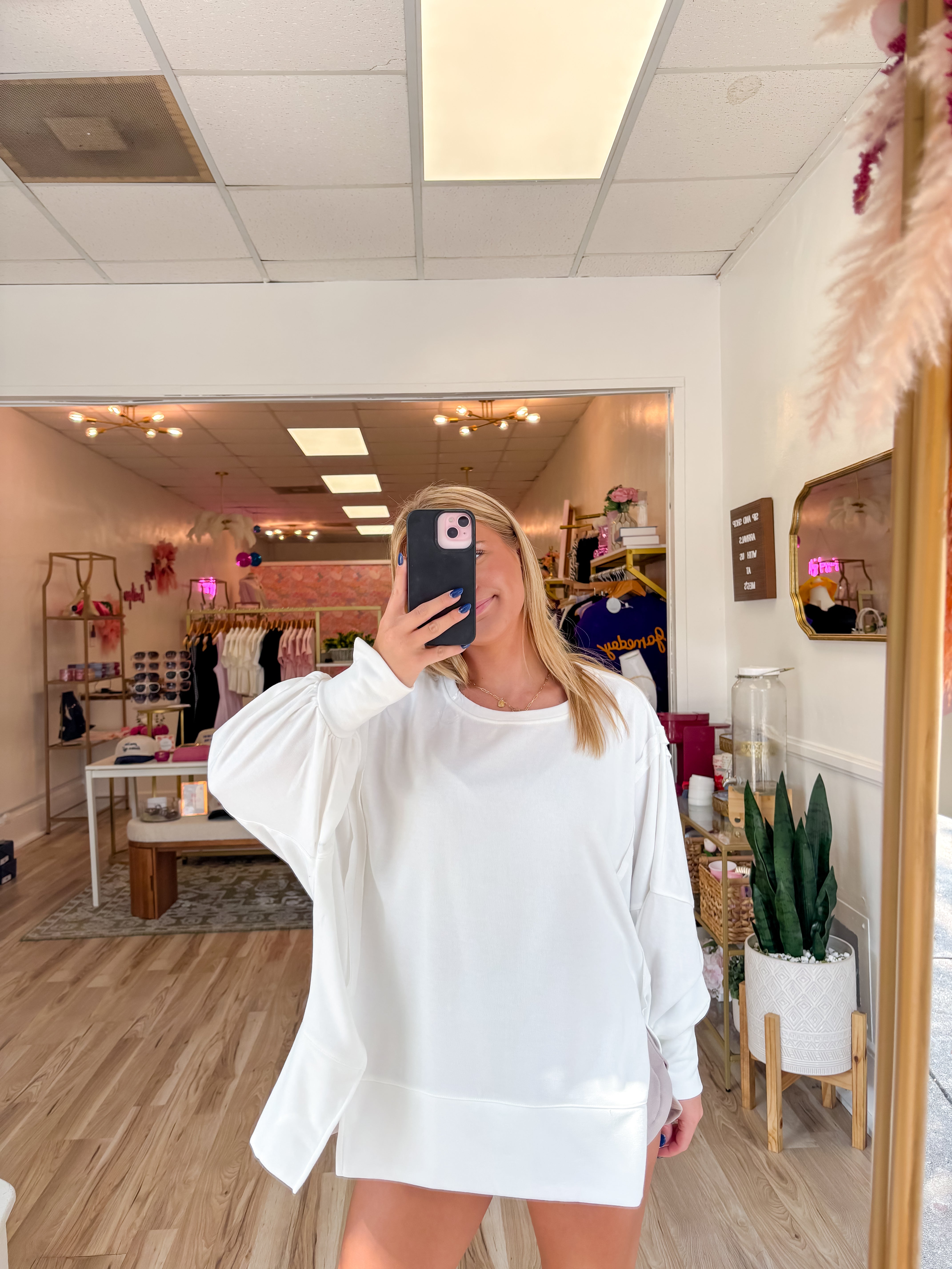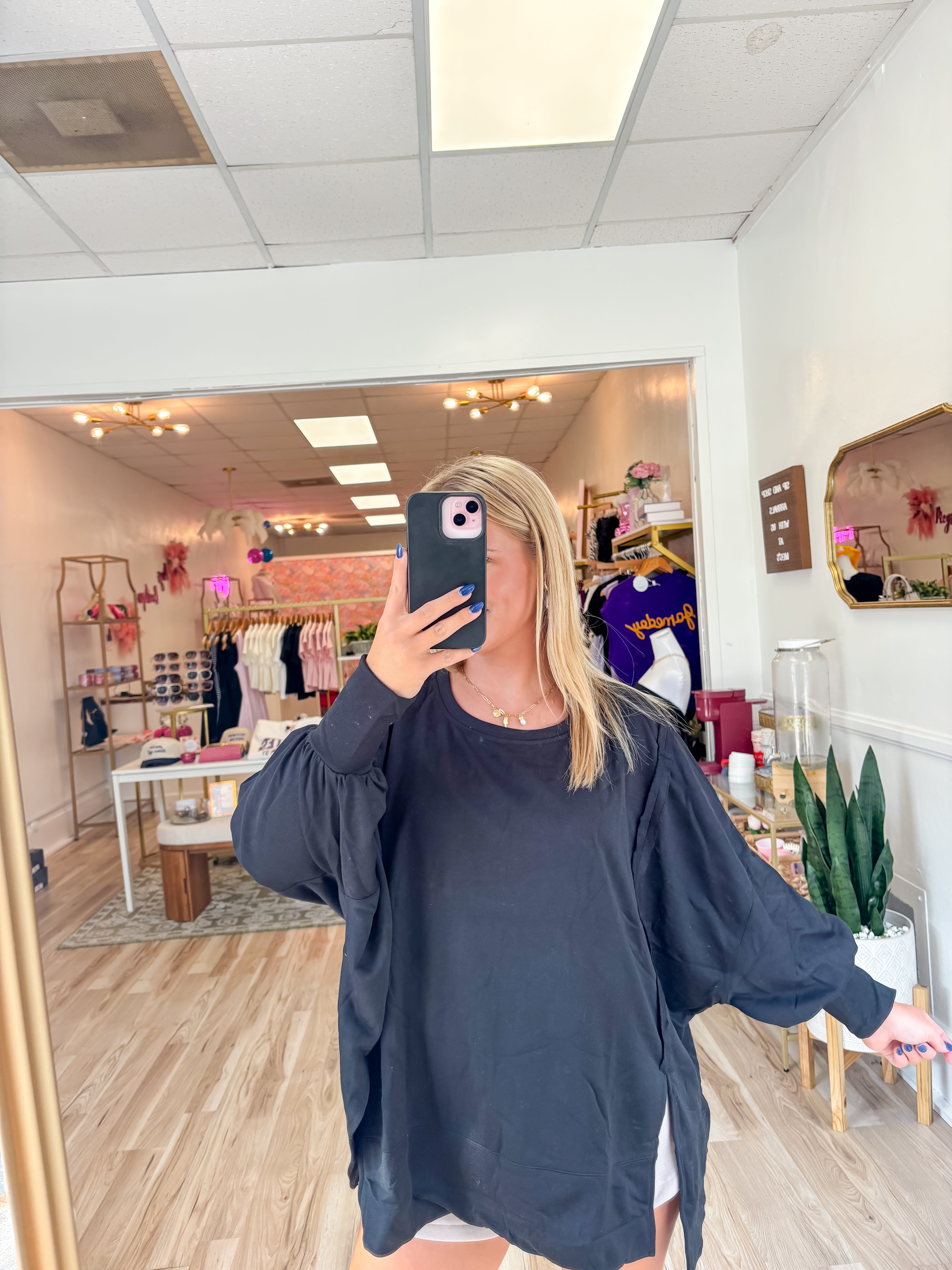 * Introducing an effortlessly stylish oversized long-sleeve tee, perfect for those seeking both comfort and style. The distinctively large and draped silhouette ensures a relaxed fit, while the highlighted raglan sleeves with unique extended cuffs add a touch of modern elegance, making it a stand-out choice for casual outings. 100% Polyester