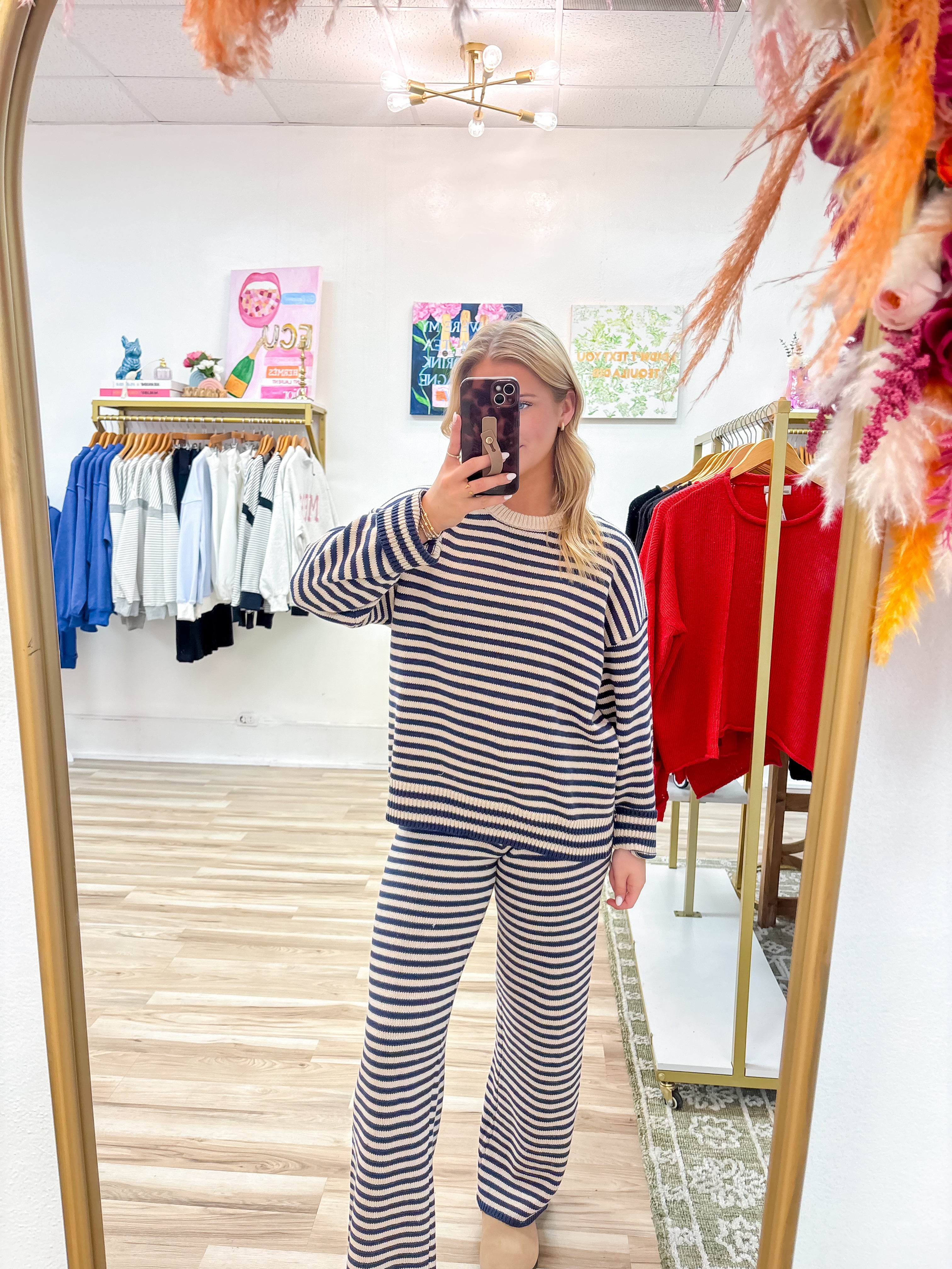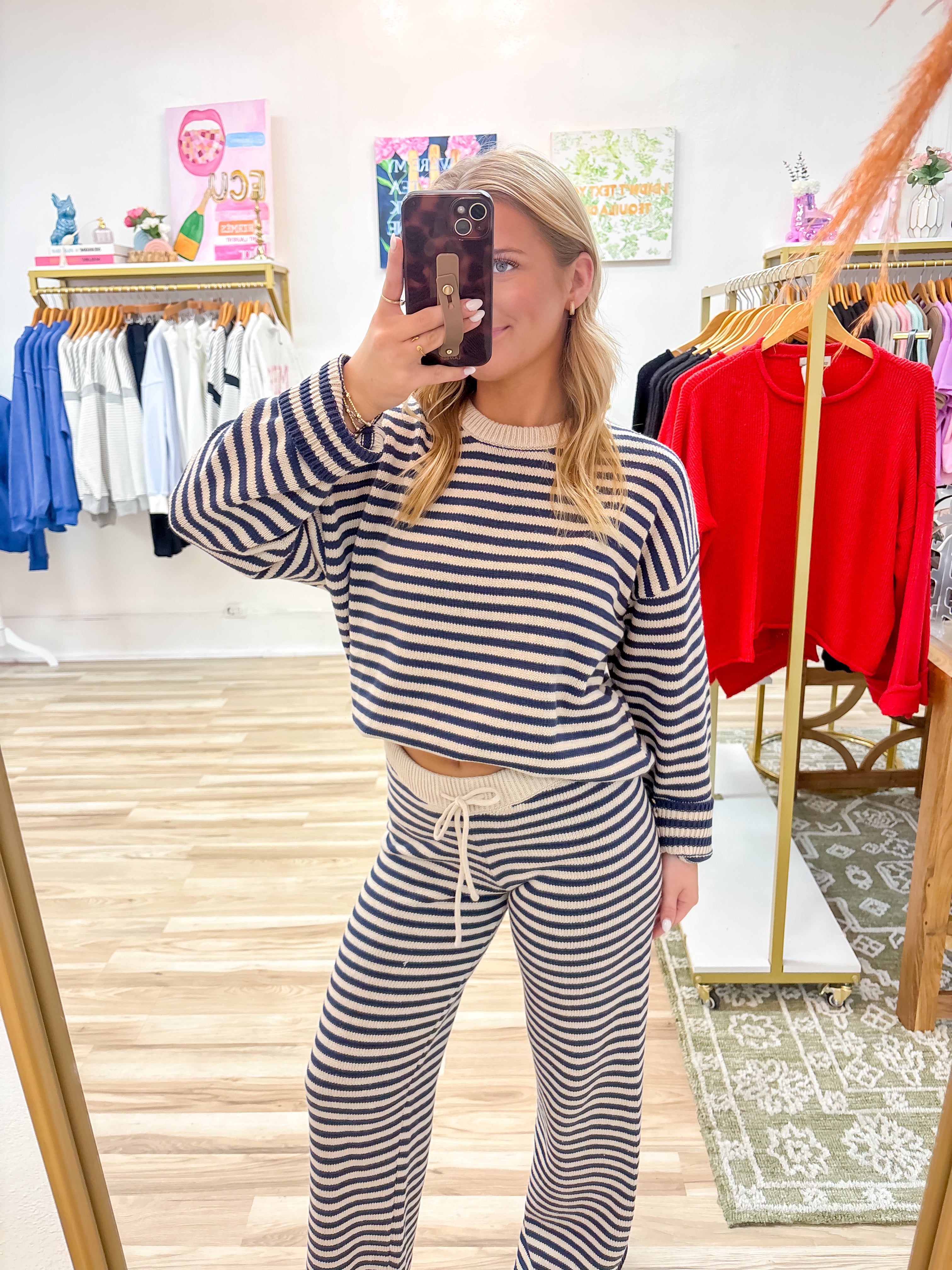 Stay comfortable and cute all day long with our Kenzie Comfort Set. Featuring a fun and playful striped design, this set includes everything you need to lounge or run errands in style. Perfect for any lazy day or grocery run, this set is sure to keep you looking and feeling your best.