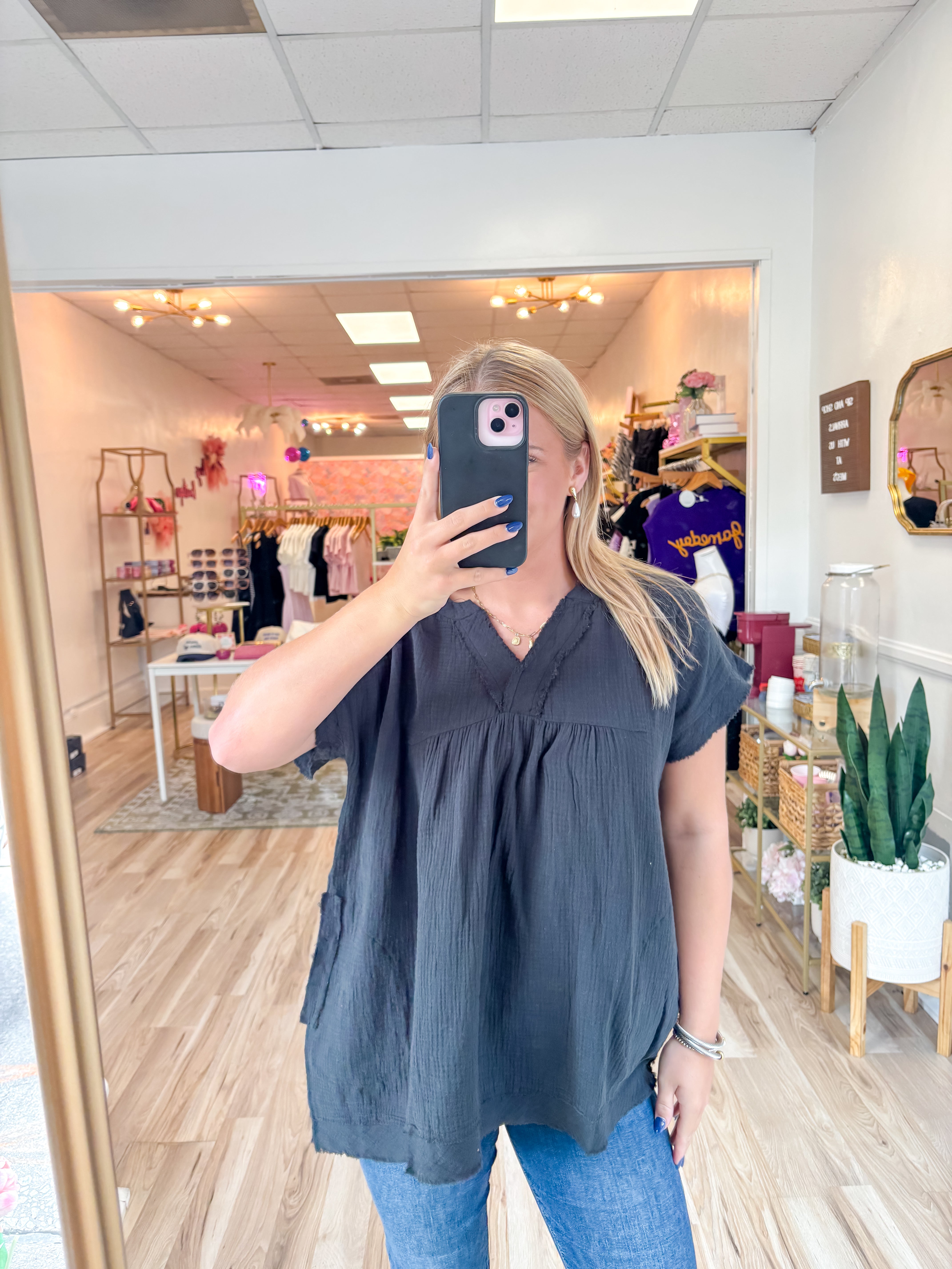 The cutest guaze top, so soft & comfy to dress up or down!