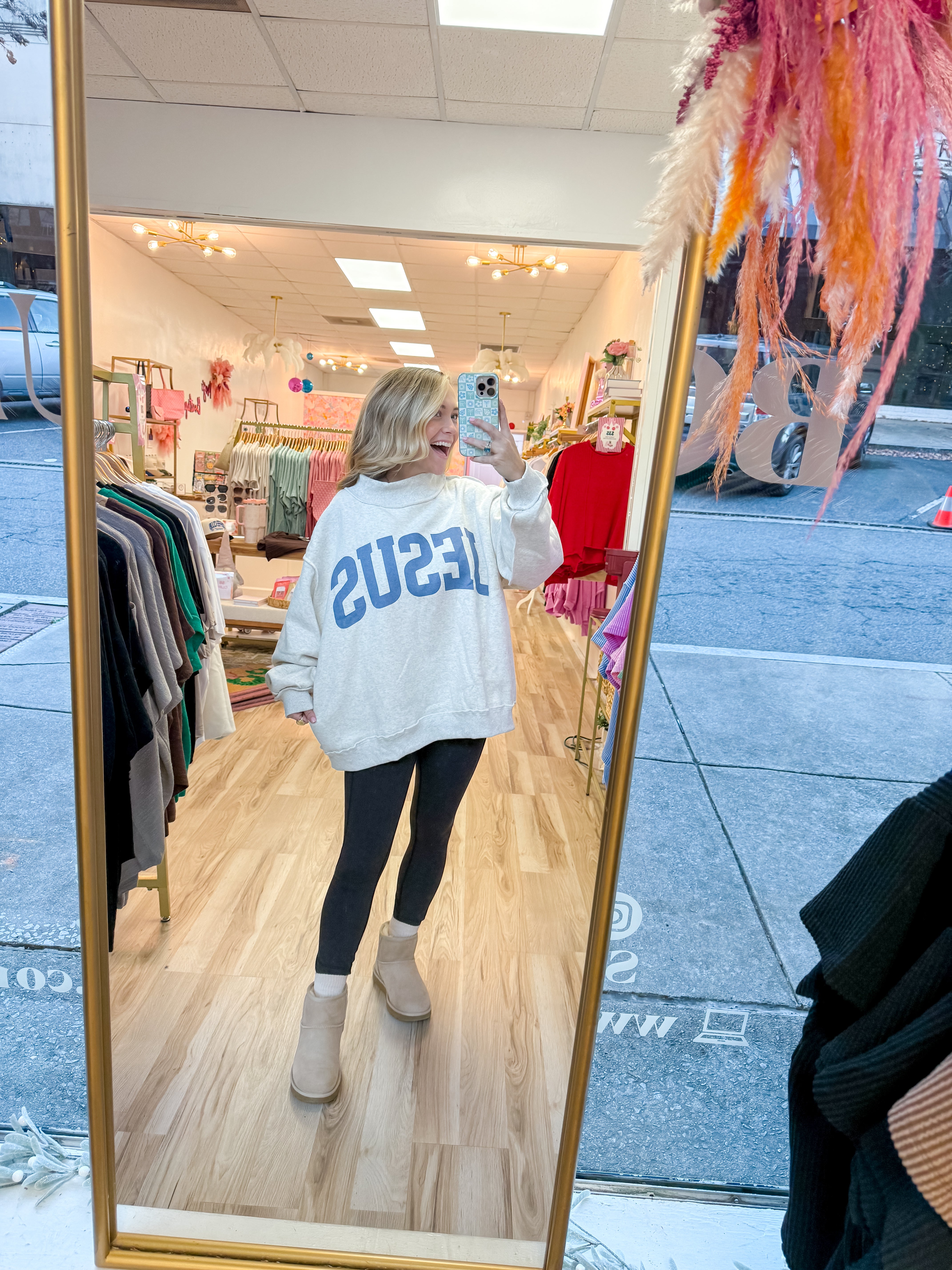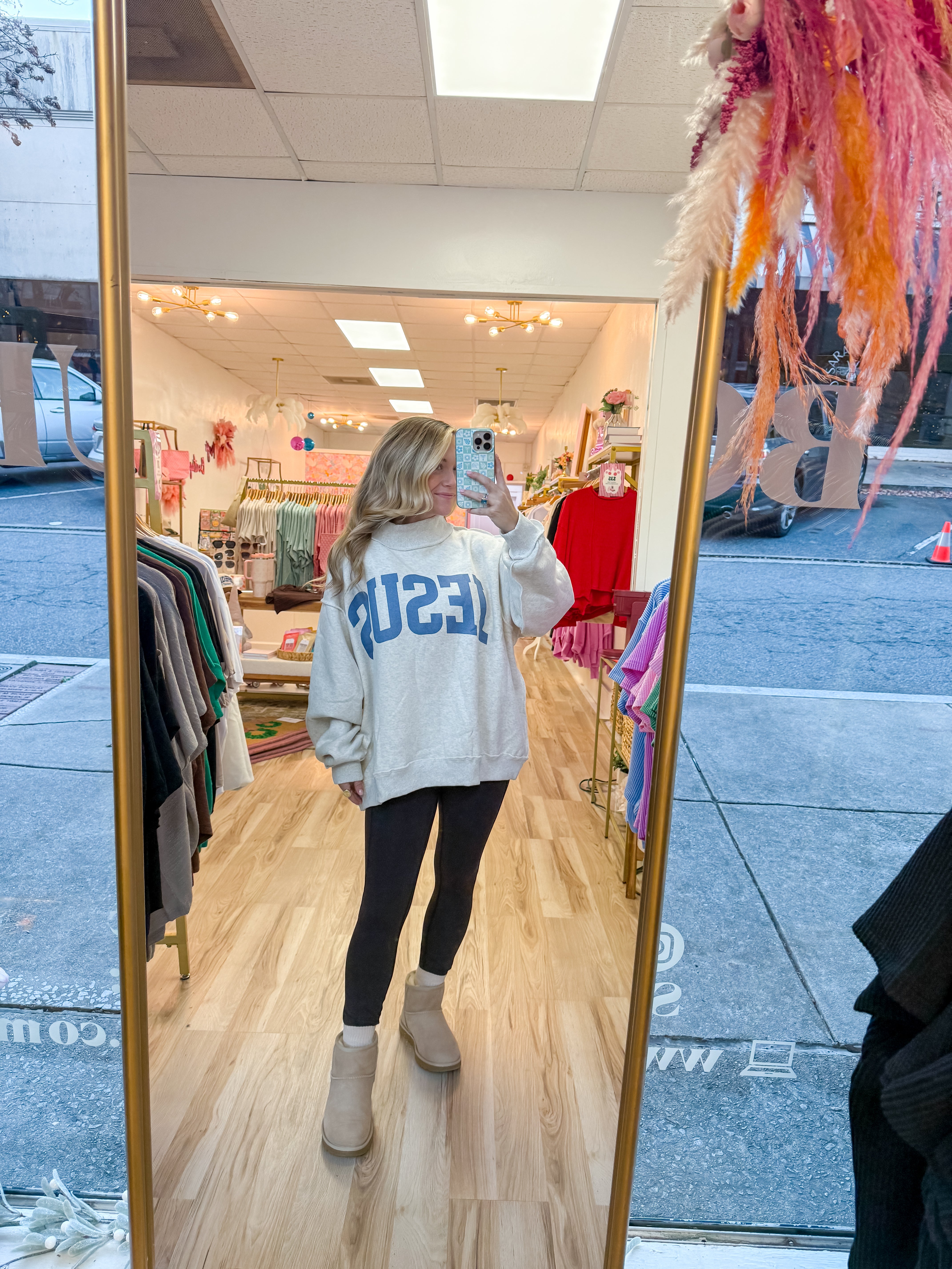 'JESUS & GOD IS GOOD' Print Reversible Mock Neck Sweatshirt - Mock-neck - Drop shoulder, long sleeves - Softest cozy fleece - Oversized fit - Rib banded hemline and cuffs - The reversible design lets you switch up your style. **