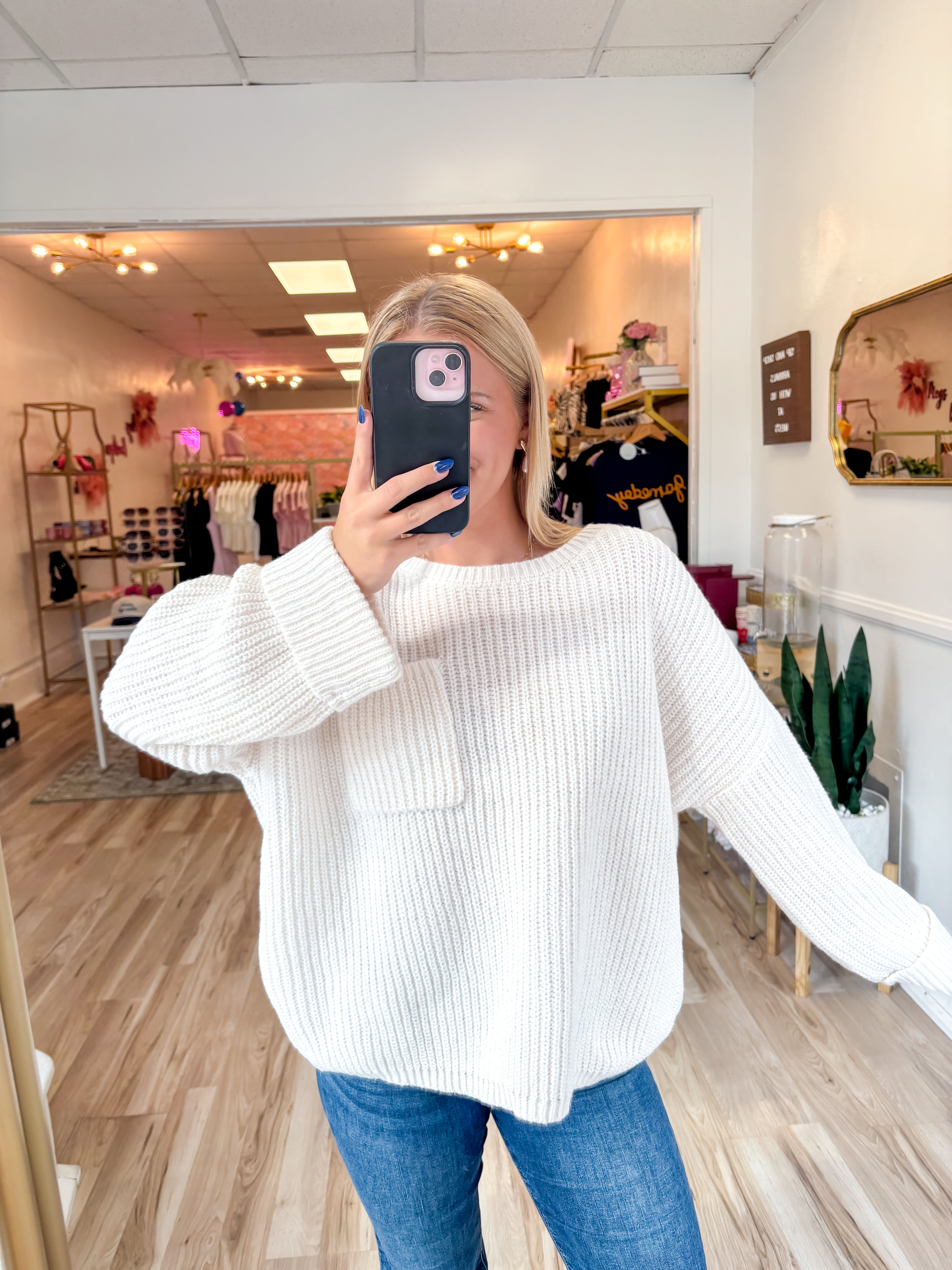 * Embrace comfort with this oversized ribbed knit sweater, featuring dropped shoulders for a relaxed fit and a chic pocket detail. Ideal for layering over a collared shirt, this piece ensures style and versatility. Pair with leather shorts or jeans for a balanced, casual look. Perfect for transition-season layering or a cozy night in. 79% polyester 21% acrylic