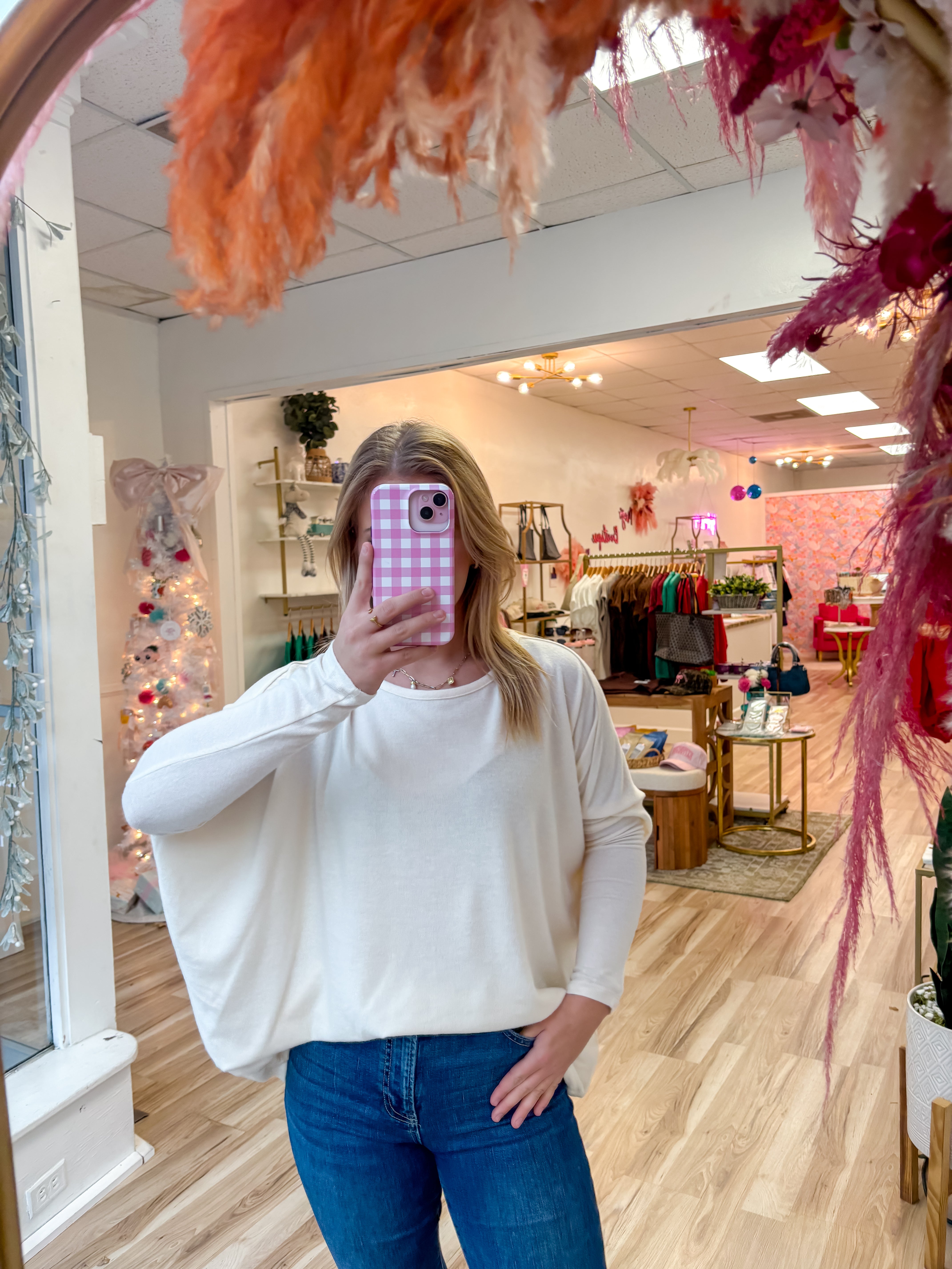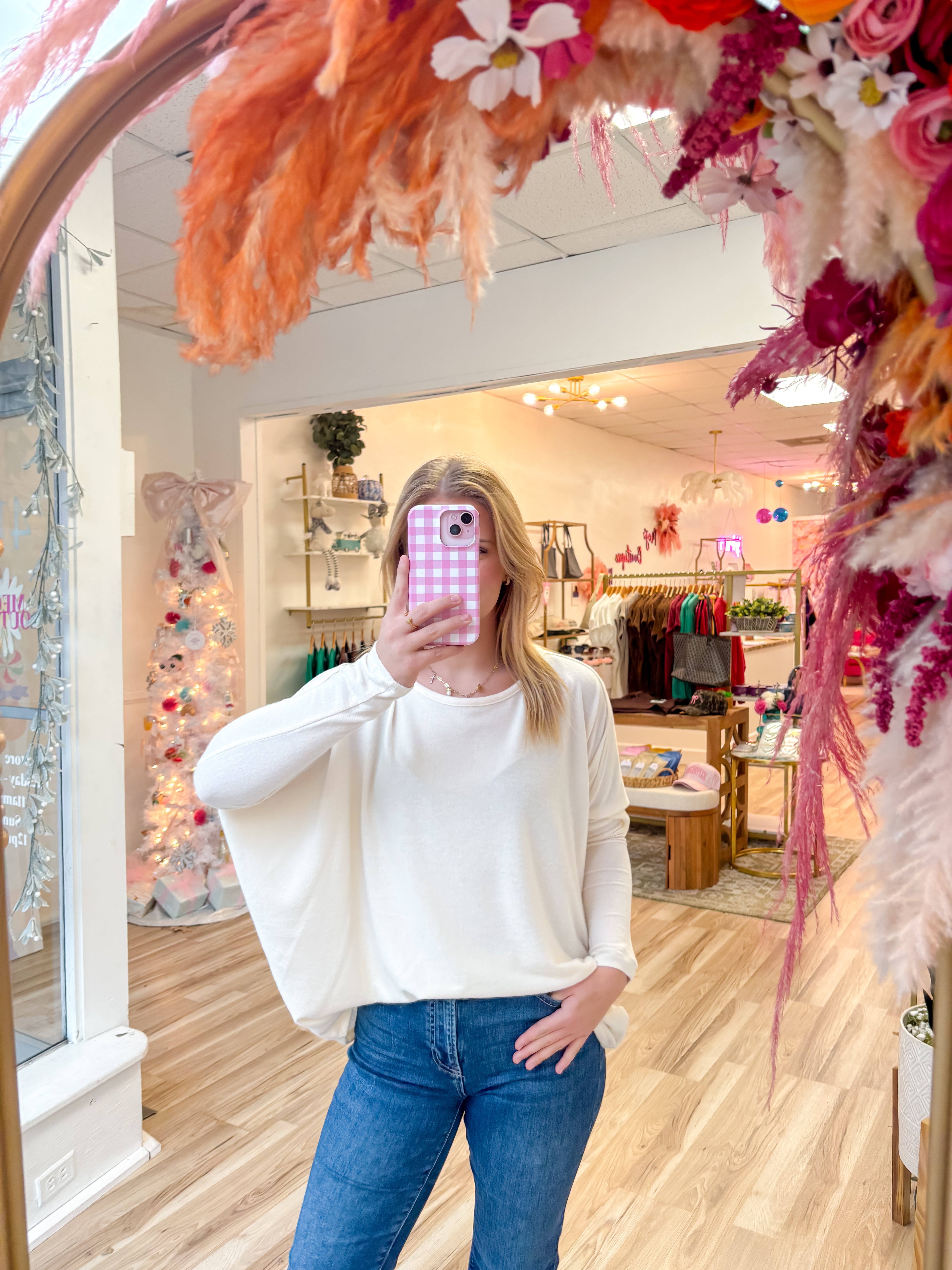 * This top features a casual relaxed fit and oversized silhouette, perfect for everyday wear or low-key evenings out. It's designed with dropped shoulders for added comfort, making it ideal for layering under jackets or pairing with your favorite jeans. Experiment by accessorizing with bold necklaces or layer under a blazer for a touch of sophistication. 60% Rayon 35% Polyester 5% Spandex