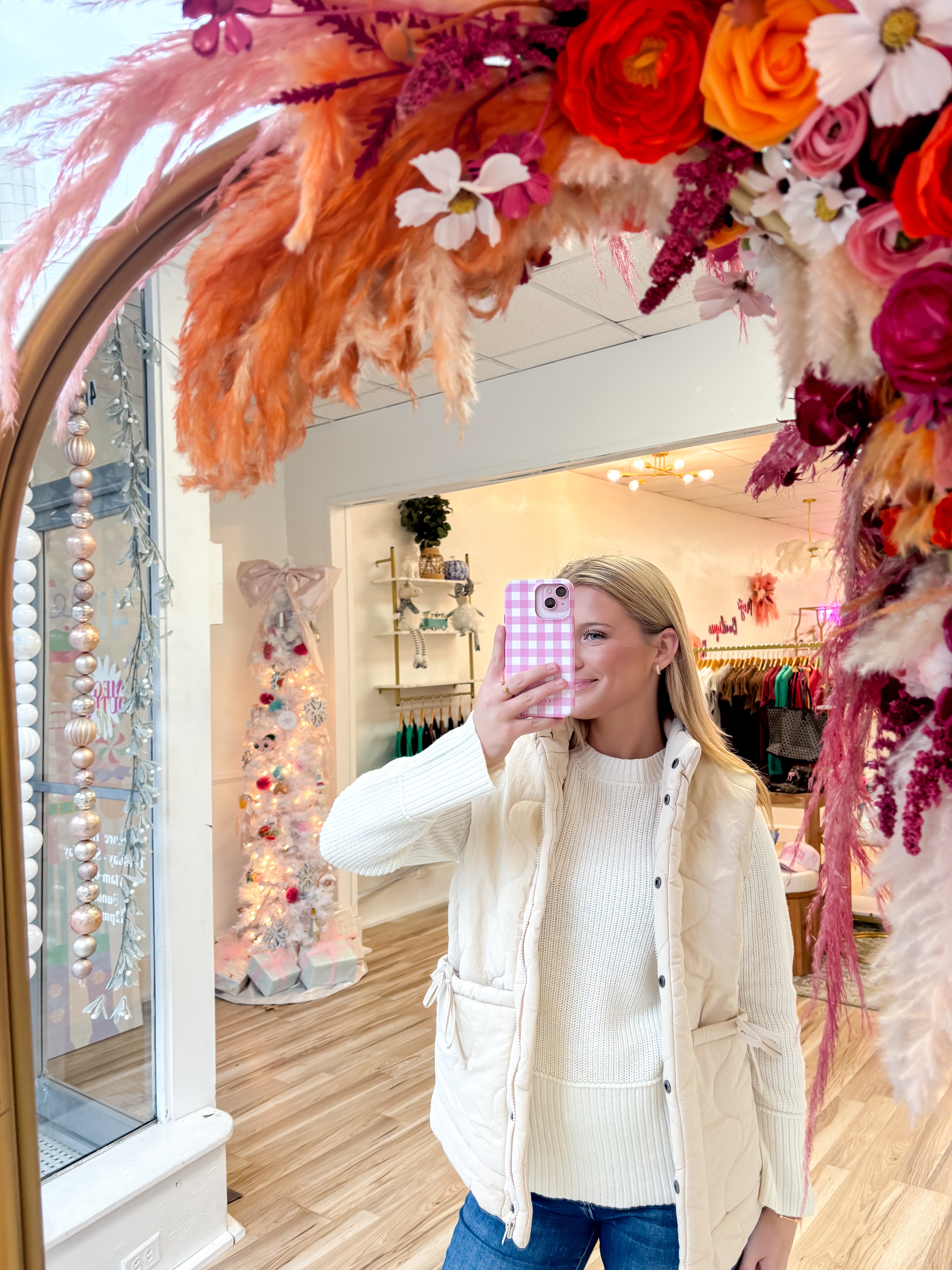 * Embrace cooler days with this sleeveless puffer jacket, featuring distinctive wave quilting and drawstring ties at the waist for an adjustable fit. Ideal for layering over a long-sleeve tee or under a coat for extra warmth.